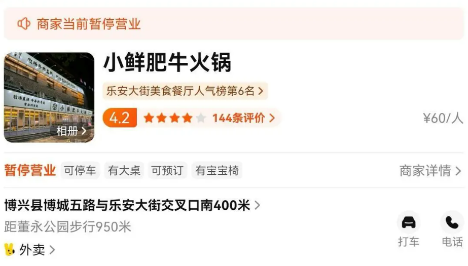 Its Meituan listing shows that the outlet has temporarily suspended operations.