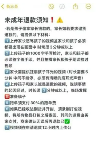 Li said she requested a refund just two hours after the transaction, but the seller accused her of “pretending to be a minor to cancel orders maliciously.” The seller then sent her a “Minor Refund Notice,” outlining shocking conditions — including a five-minute unbroken video of Li slapping her daughter with “clearly audible sounds,” a three-minute scolding video, and a 1,000-character handwritten apology from the child.