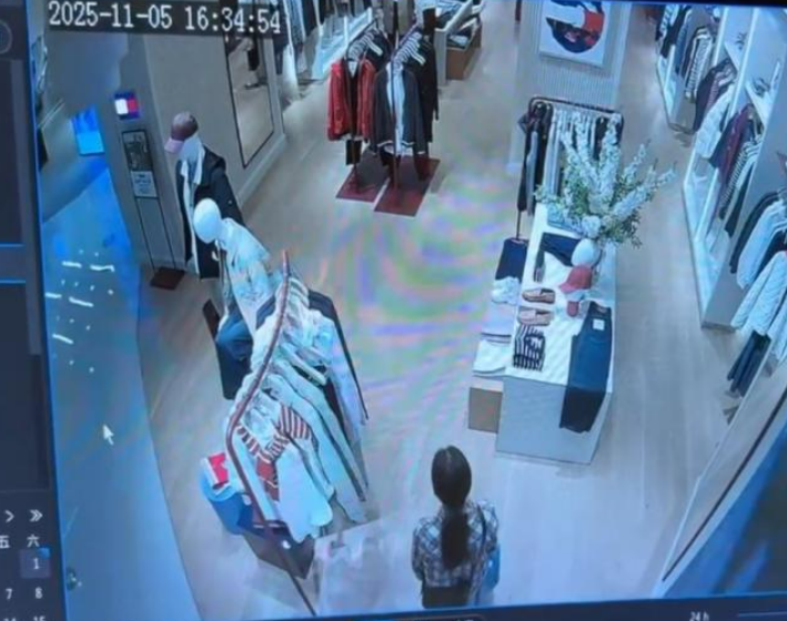 Surveillance footage from the store shows the woman approaching a clothing rack while staff were occupied, discreetly igniting the clothes.