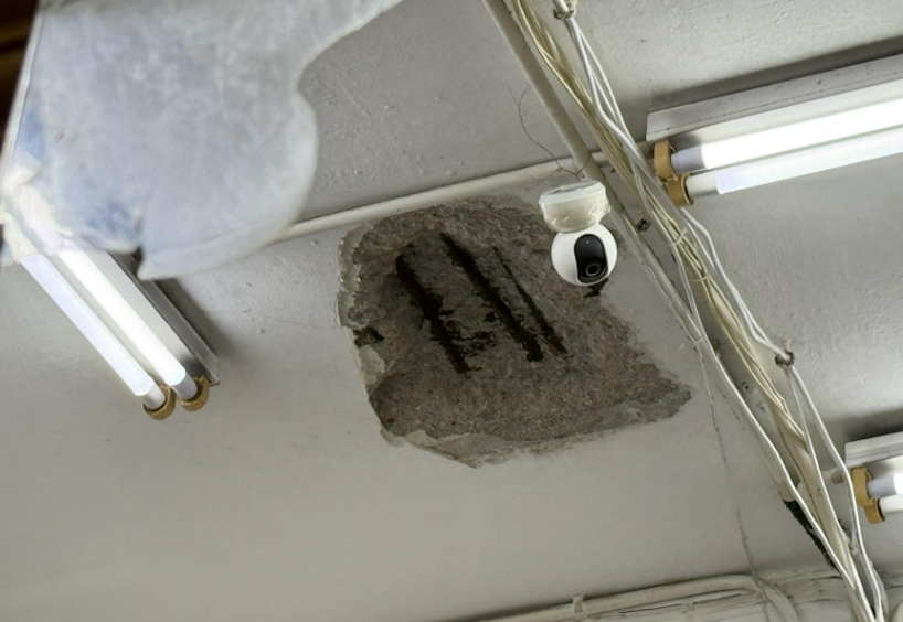 - A section of ceiling concrete collapsed inside an Indonesian food shop in Hong Kong’s Sham Shui Po district.