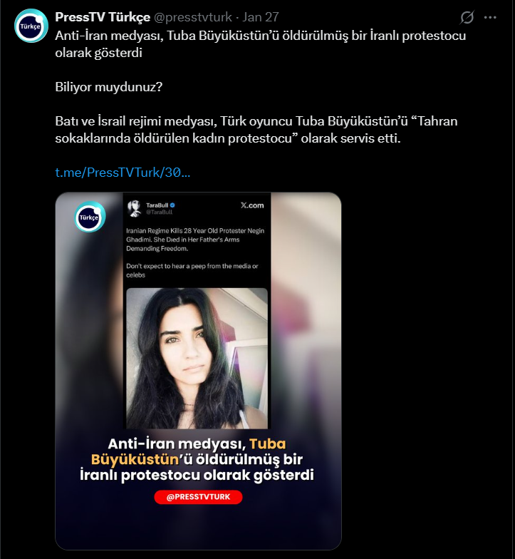 Turkish media later clarified that the individual was a Turkish actress with no connection to Iran.
