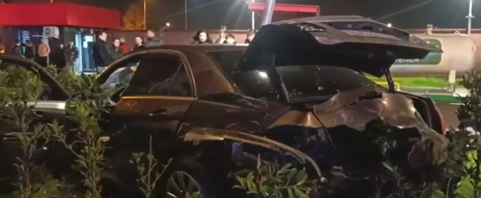 A digital render by local news outlet Stirile ProTV showed the Mercedes’ wheels sparking on the kerb before soaring through the air, narrowly avoiding a potential explosion from a nearby petrol pump.