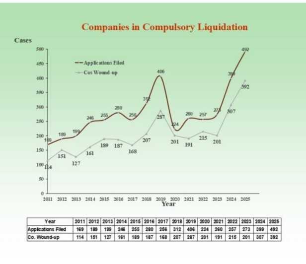 A total of 392 companies were placed under compulsory liquidation last year, an increase of about 28% from 2024, when 307 cases were recorded.