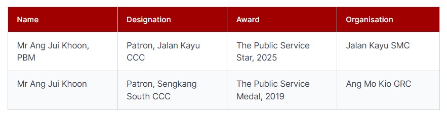 Checks on the Prime Minister’s Office website confirm that Jansen Ang serves as Chairman of the Fernvale Citizens’ Consultative Committee (CCC) and received The Public Service Medal (Pingat Bakti Masyarakat) in 2022.