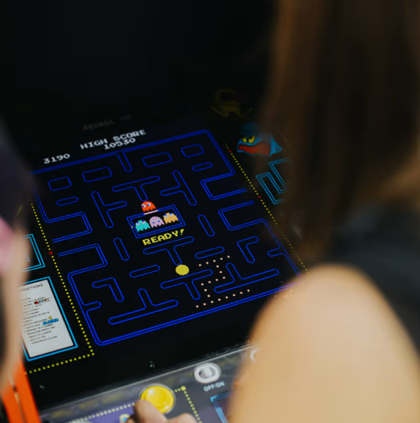 For visitors seeking a competitive experience, the Challenge Arena offers projected PAC-MAN gameplay on a large screen.