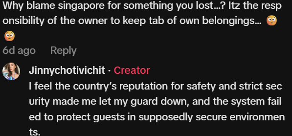 While many sympathised, others questioned her decision to highlight Singapore’s safety in her post.