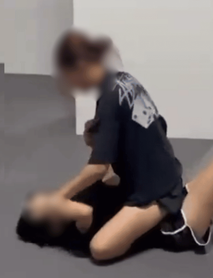 The pair then wrestle, spinning and falling to the ground before one straddles the other, slapping her repeatedly.